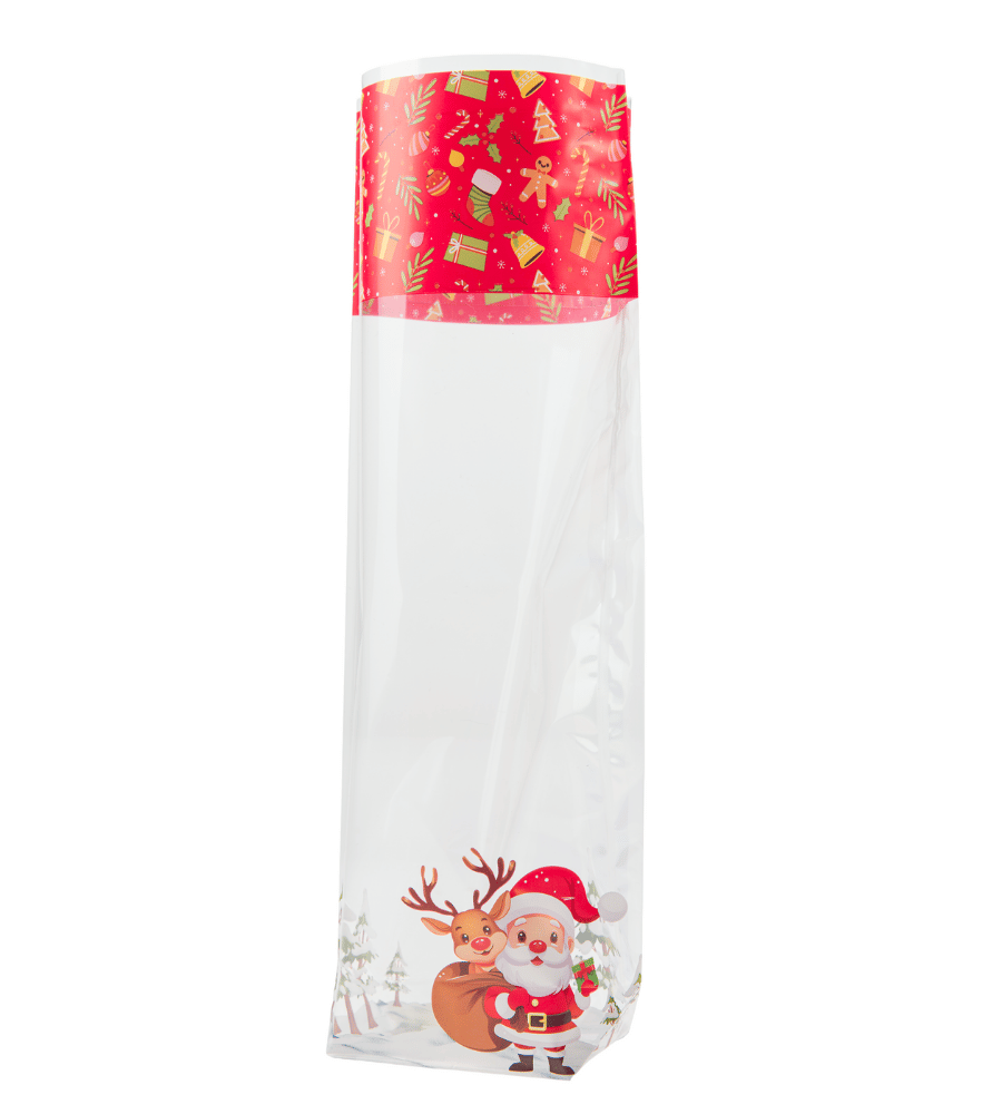 Le sachet Merry Christmas est parfait pour la période de noël, Son motif enfantin et ses couleurs fraiches se marient parfaitement avec les produits de noël. Le fond rigide améliore la stabilité de l'emballage.